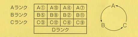 | ●座席指定は3回に1回前の席になる輪番です。 ○座席指定で毎回”座席シール”を発行します。 ○座席シールは代表者が事務局で受け取ります。「シール渡し」の期間は手帳を見て確認してください。 ○座席シールを紛失した場合は再発行します。(手数料500円) ○座席のランクは12通りで(1)〜(12)の順に回ります。 ○会費納入の遅れたサークル、2人以下のサークルはDランクとなります。 ![]() ○70歳以上おの方は申出によりシルバー席を指定します。 ○ヨル・ヨル日程の場合は1日目、2日目の日程で交互に指定をとります。 ○ヒル・ヨル日程の場合は希望アンケートを取ります。 ○日程を変更する場合は、このランク通りにはなりません。 |