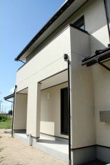奇を狙わず、至ってシンブルにデザインされた洋風石州瓦(平板瓦)と防火サイディングの外観、色柄も至ってシンブルで飽きが来ないはずと選択