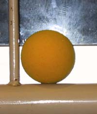 これが使うボール、材質はスポンジで出来ています。当たっても痛くないよ。 スポンジボール(ミズノ製またはダンロップ製)