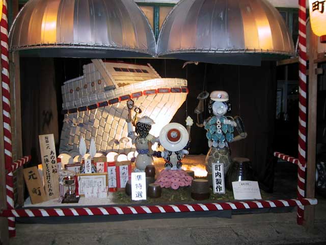 7/20〜21まで行われた平田天神祭りで各町内ごとに色々な物一式使って作る飾りです。