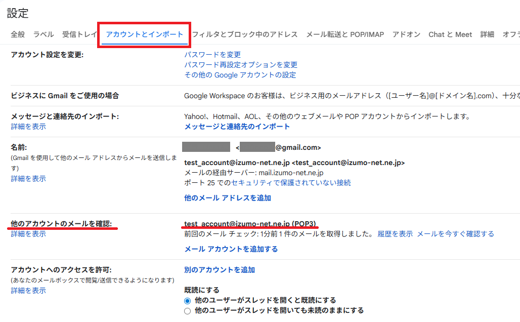 そのため、弊社サービスで作成したメールアドレスを、 ブラウザ版GmailのPOP受信で